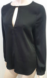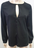 BLAQUE LABEL Womens Black Round Keyhole Neckline Long Sleeve Formal Blouse Top M