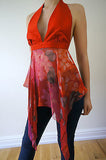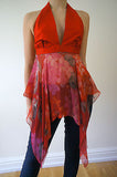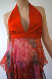 BORHAM BASMA UK Designer Red Silk Fitted Halter Neck Backless Party Top XS