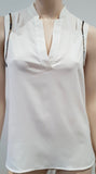 CLAUDIE PIERLOT White V Neckline Sequin Trim Sleeveless Blouse Shirt Top 36 UK8