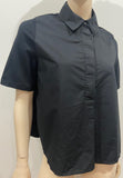 COS Black 100% Cotton Collared Jersey Rear & Short Sleeve Blouse Shirt Top XS