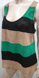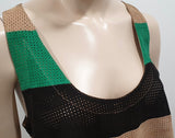 DROME Black Green & Beige Suede Leather Striped Perforated Cami Vest Tank Top L