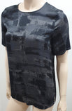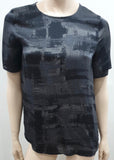 EILEEN FISHER Black & Charcoal Grey Silk Abstract Print Short Sleeve Blouse Top