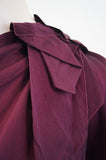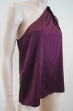 ELIE TAHARI Burgundy Plum Stretch Silk One Bow Shoulder Embellished Blouse Top M