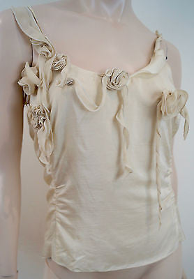 EMPORIO ARMANI Cream 100% Silk Floral Detail Sleeveless Cami Top IT44; UK12