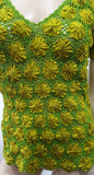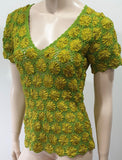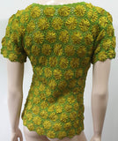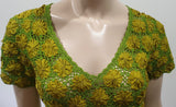 ERIC RAISINA Green & Yellow Silk Loose Embroidery Floral Detail Short Sleeve Top