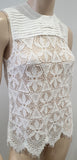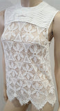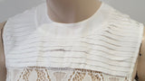 FRAME White Cotton Blend Round Neck Pleated Lace Sleeveless Tank Cami Vest Top S