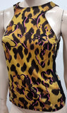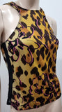 GIANNI VERSACE Gold Yellow & Black Abstract Floral Animal Print Vest Tank Top 42/8