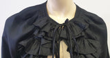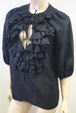 GIVENCHY Black Silk Round Tie Ruffle Neckline 3/4 Sleeve Blouse Shirt Top 36 UK8