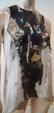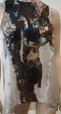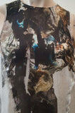 HELMUT LANG Cream Black Pink & Blue Abstract Print Fray Trim Sleeveless Top M