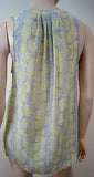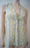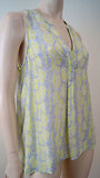 JOIE Grey Lime Green & White 100% Silk Geometric Print V Neck Sleeveless Top M