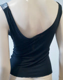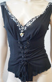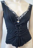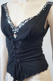 JORANDO Black Plunge V Neckline Silver Sequin Sleeveless Tie Waist Evening Top M