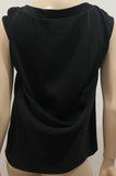 LES 100 CIELS Women's Black Round Neck Sleeveless Draped Rear Blouse Cami Top S