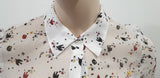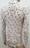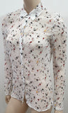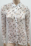 MAJE Women's White & Multicolour Bird Star Print Sheer Chiffon Blouse Shirt Top