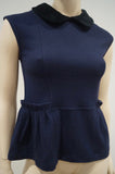 MARC BY MARC JACOBS Navy Blue 100% Wool Black Pinafore Collar Sleeveless Top S