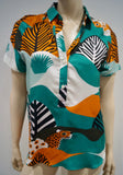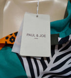 PAUL & JOE Blue Brown Cream Orange Silk Cotton Abstract Print Blouse Top 10 BNWT