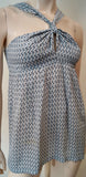 PAUL & JOE Women's Blue & Cream Silk Geometric Print Sleeveless Tunic Top 2 UK12