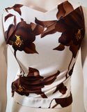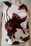 PAUL & JOE Cream & Brown Silk Blend Floral Print V Neck Sleeveless Top Sz:1 UK10