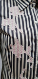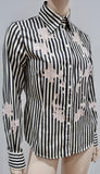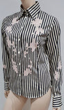 PAUL SMITH WOMEN Cream Black Stripe Pink Floral Detail Blouse Shirt Top 44 UK12