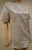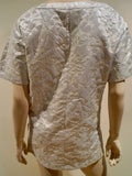 PHILOSOPHY Grey & Silver Metallic Textured Scoop Neck Short Sleeve T-Shirt Top 1