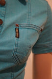PLEIN SUD Blue Cotton Stretch Collared Short Sleeve Fitted Blouse Shirt Top 40/8