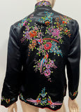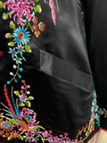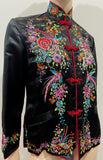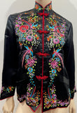 PLUM BLOSSOMS Black Multicolour Embroidered Chinese Kimono Blouse Jacket Top 36