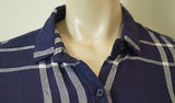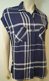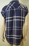 RAILS Blue & Cream Check Cap Sleeve Collared Casual Summer Blouse Shirt Top Sz:M