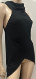 RICK OWENS Black Silk Blend High Neckline Open Back Sleeveless Blouse Top UK10
