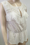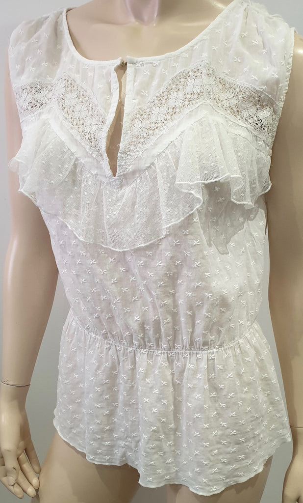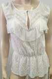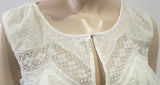 SANDRO Off White Embroidered Lace Trim Round Neck Sleeveless Blouse Shirt Top S