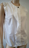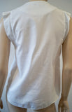 SANDRO White 100% Cotton Round Neck Sleeveless Pleated Blouse Shirt Top Sz:2; M