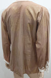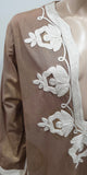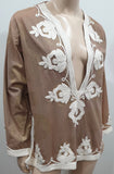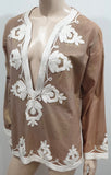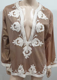 TAJ BY SABRINA CRIPPA Brown Gold Metallic & Cream Trim Embroidered Kaftan Top L