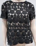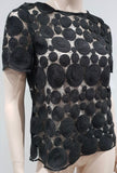TARA JARMON Black Sheer Webbed & Circular Lace Short Sleeve Blouse Top 38 UK10