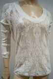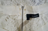 THE KOOPLES Winter White Perforated Pattern Round Neck 3/4 Sleeve Sweater Top S