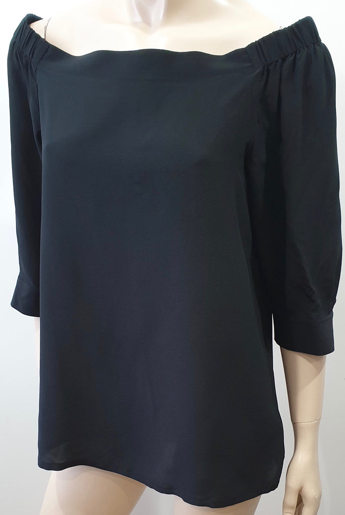 THEORY Black Silk Elasticated Wide Neck Off Shoulder 3/4 Sleeve Blouse Tunic Top