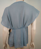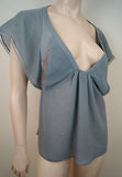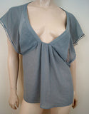 VANESSA BRUNO Pale Grey Plunge V Neck Lace Insert Cap Sleeve Top FR40 UK12