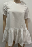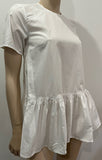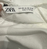 ZARA White Cotton Round Neck Short Sleeve Pleated Hemline Blouse Shirt Top XS