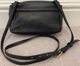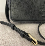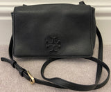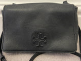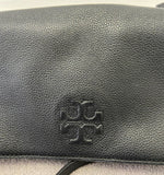 TORY BURCH Black Pebbled Leather Branded Flap Over Fastened Lined Shoulder Bag