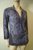 TORY BURCH Women's Blue Purple 100% Cotton Abstract Print Tunic Kaftan Top 4 UK8