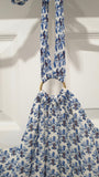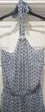 TORY BURCH Blue & White Silk Printed Halter Neck Elastic Waist Wide Leg Jumpsuit