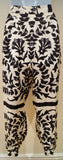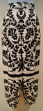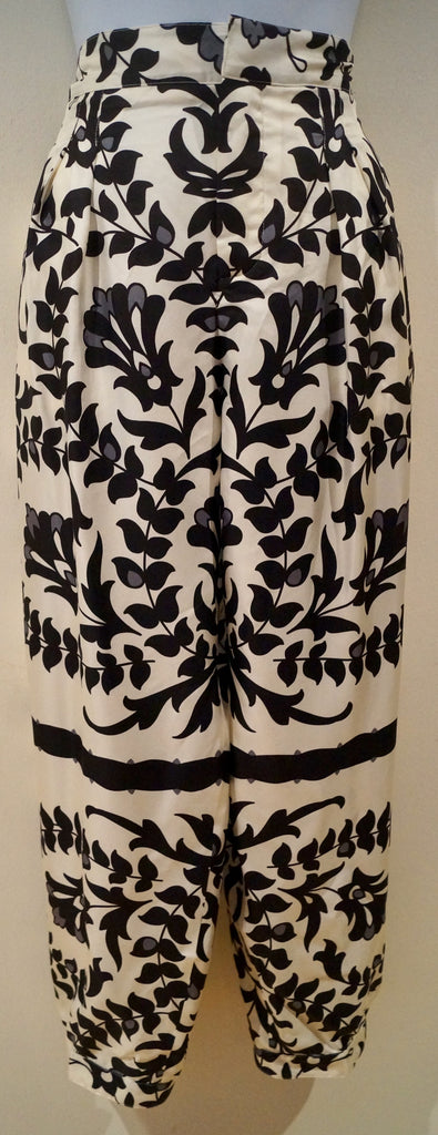 CHLOE Cream & Black Silk Floral Print High Rise Tapered Pleat Trousers Pants 42