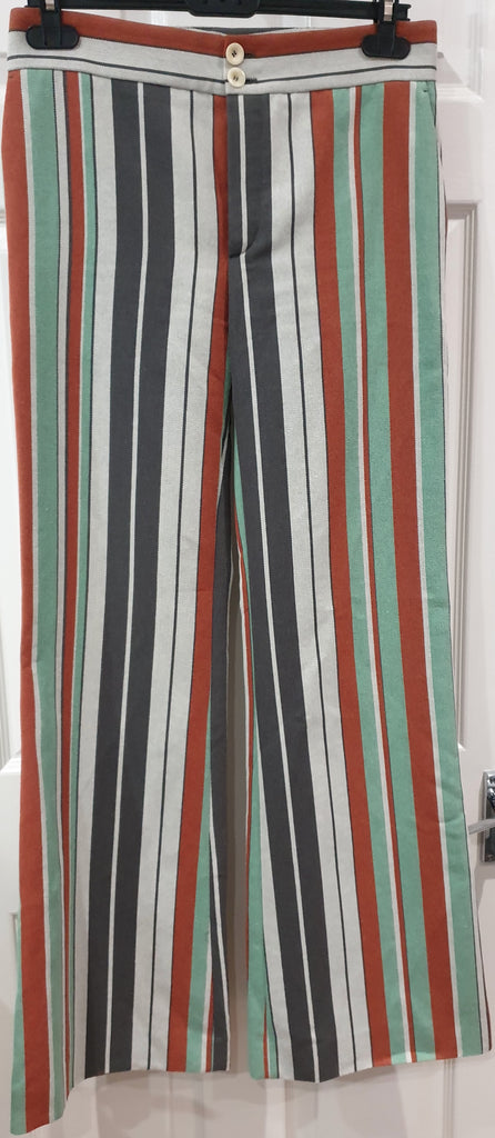 CHLOE Multi Colour Striped Cotton Blend Twill Wide Leg Trousers Pants FR36 UK8