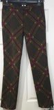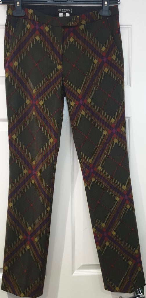 ETRO Olive Green & Multi Colour Check Wool Blend Slim Fit Trousers Pants 40 UK8