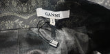 GANNI Charcoal Grey Silver Metallic Floral Stitch Wide Crop Trousers Pants NEW!