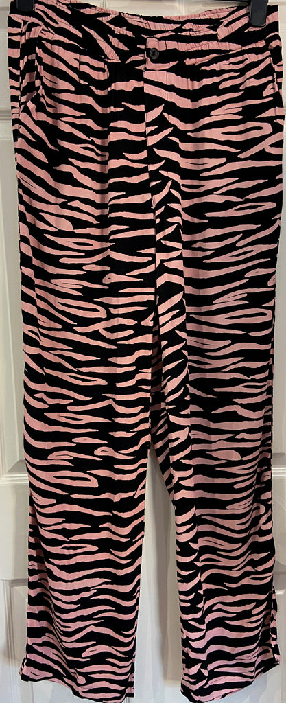 GANNI Pink & Black Zebra Print Wide Tapered Leg Trousers Pants EU38 UK10 BNWT