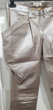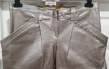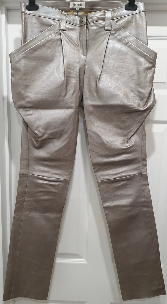 JITROIS Silver Metallic Leather Stretch Pleated Slim Fit Trousers Pants 40 UK10
