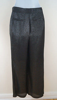 KARL LAGERFELD Black & Silver Metallic Wide Leg Evening Trousers Pants Sz38 UK10
