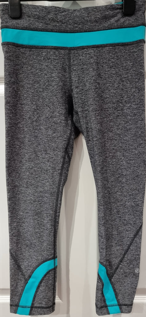 LULULEMON Activewear Grey Blue Gym Yoga Pilates Capri Crop Leggings Pants UK8