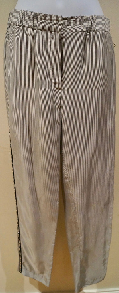MAJE Blue White Stripe Diamante Detail Elasticated Waist Casual Trousers Pants M