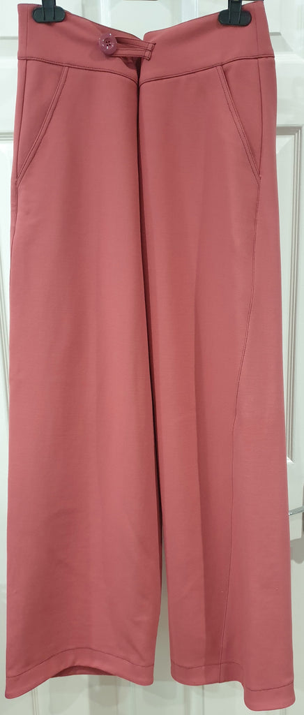 MARNI Pink Wool Blend Mock Button Fastened Wide Leg Crop Trousers Pants 40 UK8