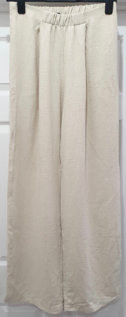 MILLA Beige Ramie Elasticated Waist Casual Wide Leg Summer Trousers Pants S