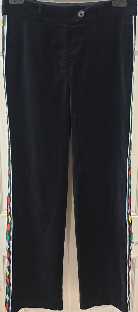 MIRA MIKATI Midnight Blue Black Printed Side Wide Leg Velvet Trousers Pants UK12